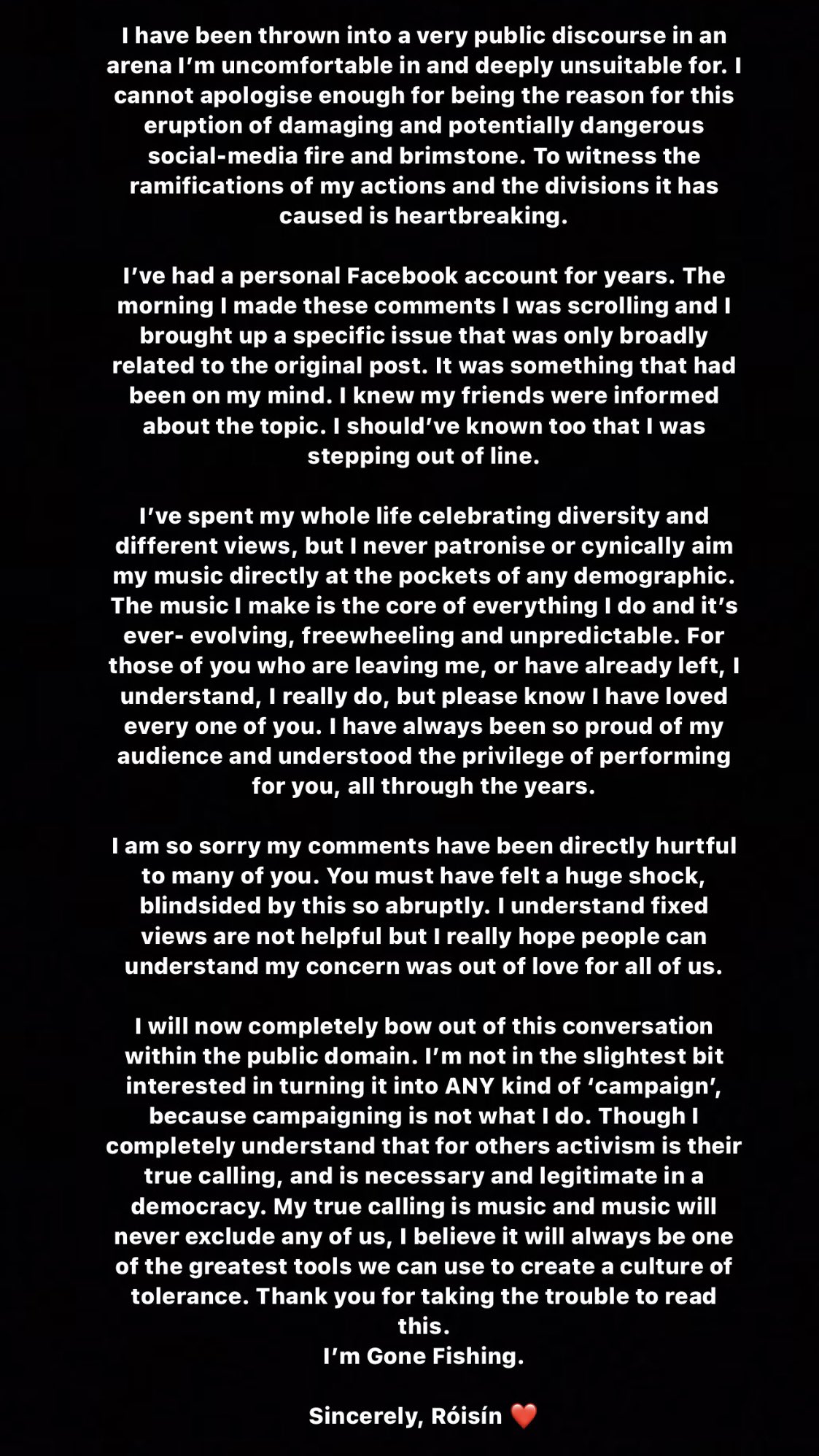 Murphy has now responded to the storm, writing a long statement on Twitter. She apologised for “this eruption of damaging and potentially dangerous social-media fire and brimstone. To witness the ramifications of my actions and the divisions it has caused is heartbreaking.”