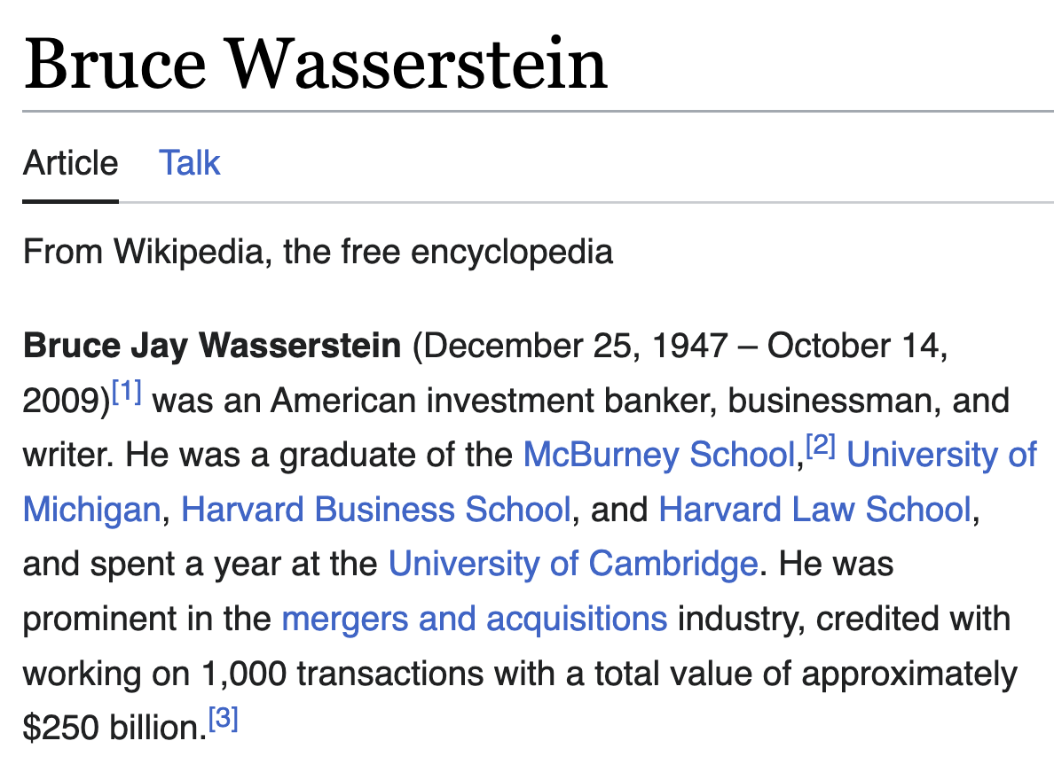 She was married to Jew banker billionaire Bruce Wasserstein, who died in 2009.