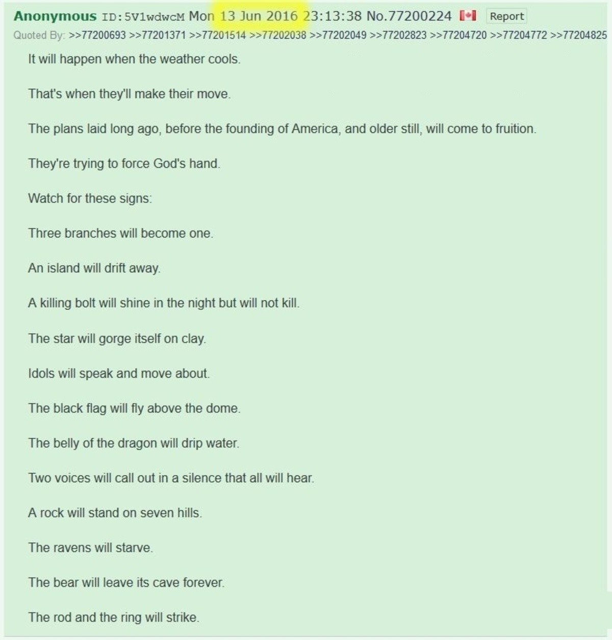 Now, a refresher for those of you who are unaware of the /pol/ prophecy.