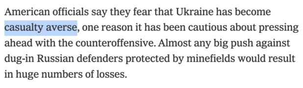 Glenn Greenwald says in the above video that he has no idea what the solution is, in part because no one in Washington is capable of admitting that this whole thing was a waste. He also notes that last week the New York Times – citing American officials – accused the Ukraine of being “casualty averse.”