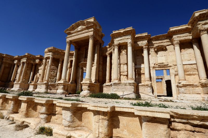 Abdulkarim said militants have destroyed the facade of the second-century theater, along with the Roman-era Tetrapylon — a set of four monuments with four columns each standing at the center of the colonnaded road leading to the theater.