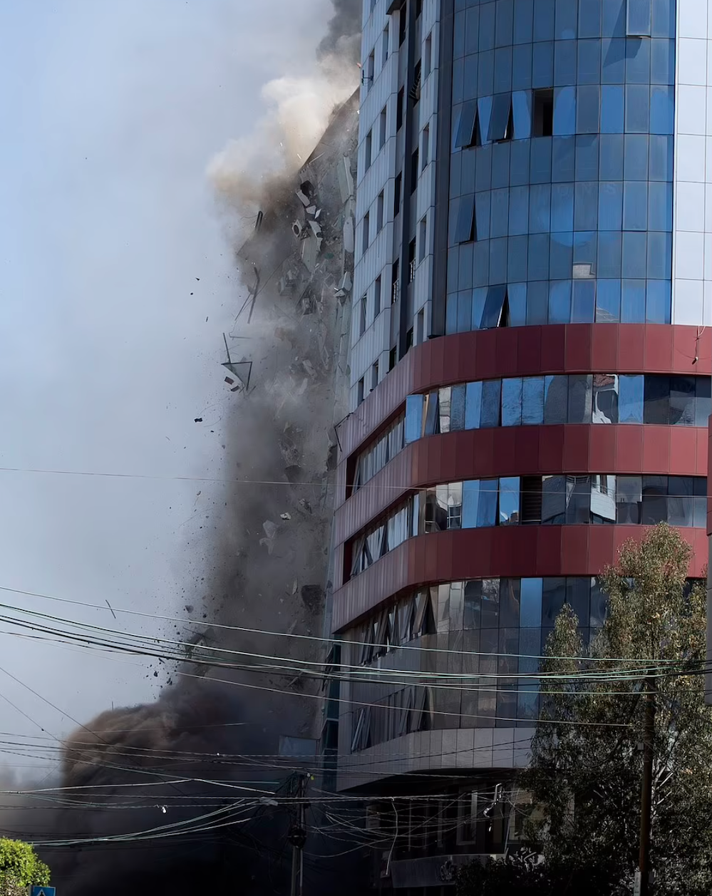 Twelve AP staffers and freelancers were working and resting in the bureau on Saturday afternoon when the Israeli military telephoned a warning, giving occupants of the building one hour to evacuate. Everyone was able to get out, grabbing a few belongings, before three heavy missiles struck the 12-story building, collapsing it into a giant cloud of dust.