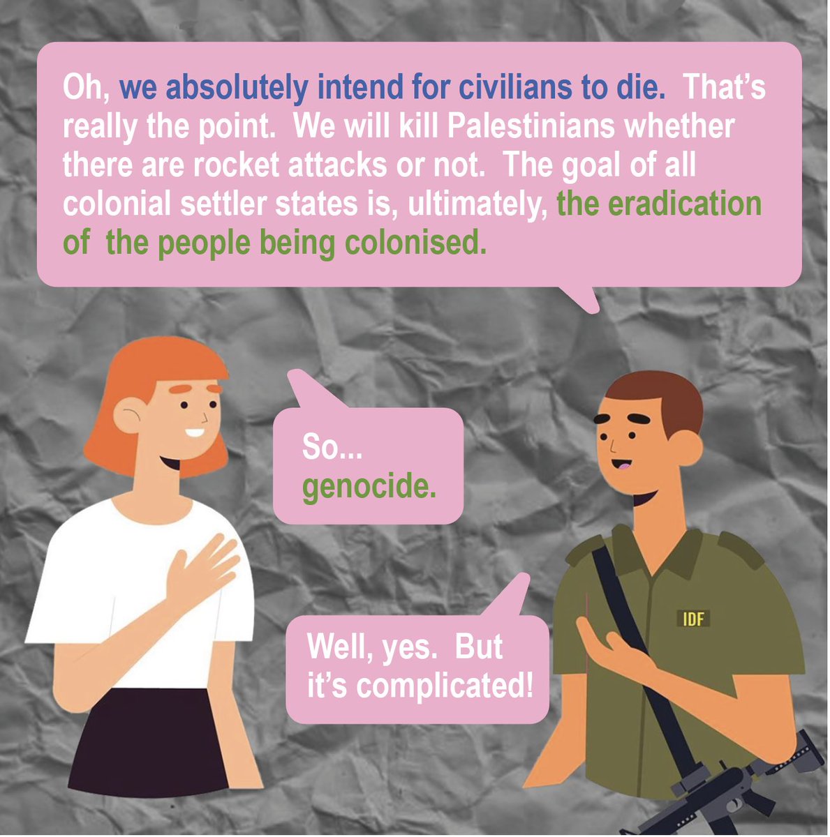 It’s actually not complicated: Jews stole the land and then started killing everyone. Anyone who makes it more complicated than that is actually a liar, regardless of whether they seem to be acting “reasonable” by not just going full Joe Biden and saying “right to defend.”