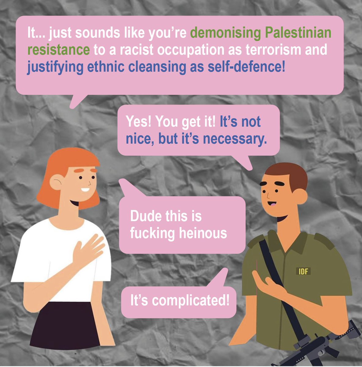 The only people out there actually defending Palestine are Ilhan Omar and Rashida Talib. I obviously dislike those two individuals in general, but credit where credit is due.
