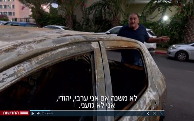 “This car was used to drive my kids to school…[The attacker] came to the college [where it was parked] and burned the car, here inside the college,” Israeli said, showing a Channel 2 crew the burned remains of his vehicle.