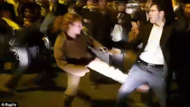 The video shows the group of men spit and swear at Golan, calling a ‘shiksa’ (a non-Jewish woman) as well as w****.Golan is return flicks out with a series of kicks aimed at head and knee to push the protesters back, as well as kung-fu chops aimed at those spitting at her.