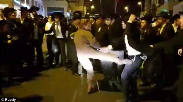 A video has emerged of several dozen Jewish men surrounding a Jewish female and getting beat up. The Jewish men were calling her a ‘shiksa’ – a racial slur for non-Jews – which prompted her to start kicking their pitiful pear shaped bodies.