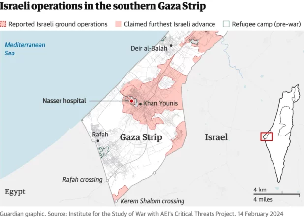 Israeli forces have raided the largest hospital in the Gaza Strip that is still functioning, amid warnings from the UN aid chief that a threatened ground offensive in Rafah, the area’s last remaining place of relative safety, could trigger an exodus of refugees fleeing into Egypt.