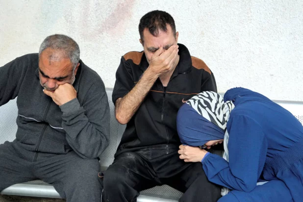 Mourners react near to the bodies of Palestinians killed in an Israeli strike, at Abu Yousef al-Najjar hospital in Rafah, May 5, 2024.