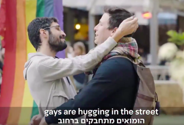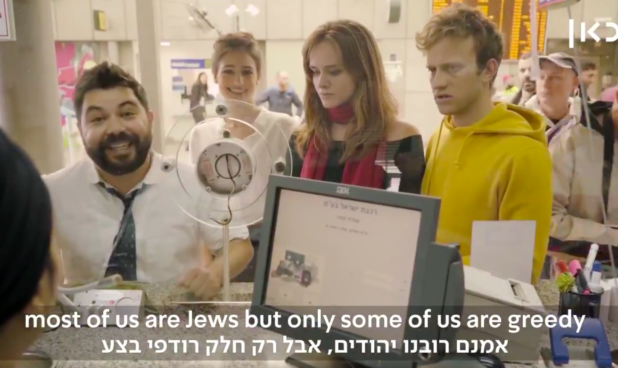 The clip, released by state-owned Kan broadcaster ahead of the Eurovision Song Contest in Tel-Aviv next week, begins with a pair of terrified European guests arriving at Ben Gurion International Airport. They are jumped on by the contest’s host Lucy Ayoub and the channel’s journalist Elia Grinfeld, who break into a catchy song full of various stereotypes about Israel.
