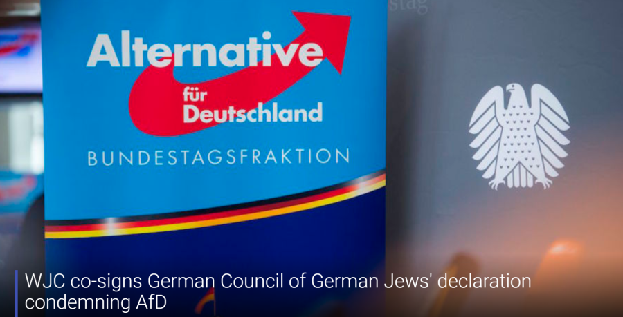 The World Jewish Congress has co-signed a joint declaration initiated by the Central Council of Jews in Germany condemning the far-right Alternative for Germany (AfD) party as a “racist and anti-Semitic party” and a “threat to Jewish life in Germany.”