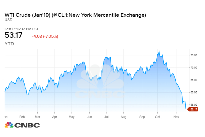 Oil prices getting lower. Great! Like a big Tax Cut for America and the World. Enjoy! $54, was just $82. Thank you to Saudi Arabia, but let’s go lower!