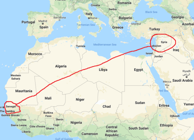 I was wrong, I looked up the location of Senegal and realized that due to its close proximity to the brutal civil war in Syria, he needed to be in Italy.