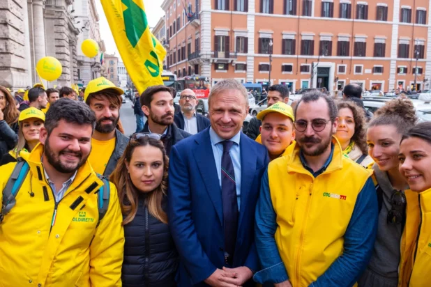 Italian minister of agriculture Francesco Lollobrigida with supporters