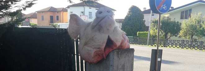 A pig head with some parts of entrails were found in Sacile on the concrete fence pillar in front of the garden of the building in Via San Giovanni del Tempio, at number 77, a building managed by the social cooperative Karpos of Porcia.