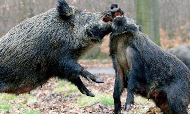Furthermore, boars are dangerous. Their hide is so thick that it can take a bullet and still keep coming at you. Boars are nature’s tanks. If you get chased up a tree, the boar will ram the damn tree and gore its roots until the damn thing falls and it can get at you.