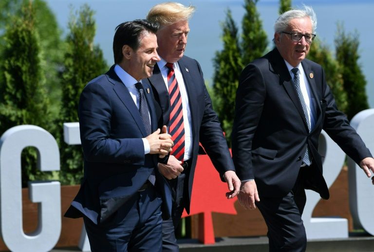 Italy’s new prime minister, Giuseppe Conte, broke sharply with the EU on Friday at his first international summit, and joined U.S. President Donald Trump’s call for Russia to be reinstated to the exclusive club of industrialized nations.