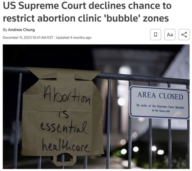 Last year, Trump’s very conservative Supreme Court refused to address a case about removing these “buffer zones” around abortion clinics, where Christians can get arrested for telling sluts not to murder their children.