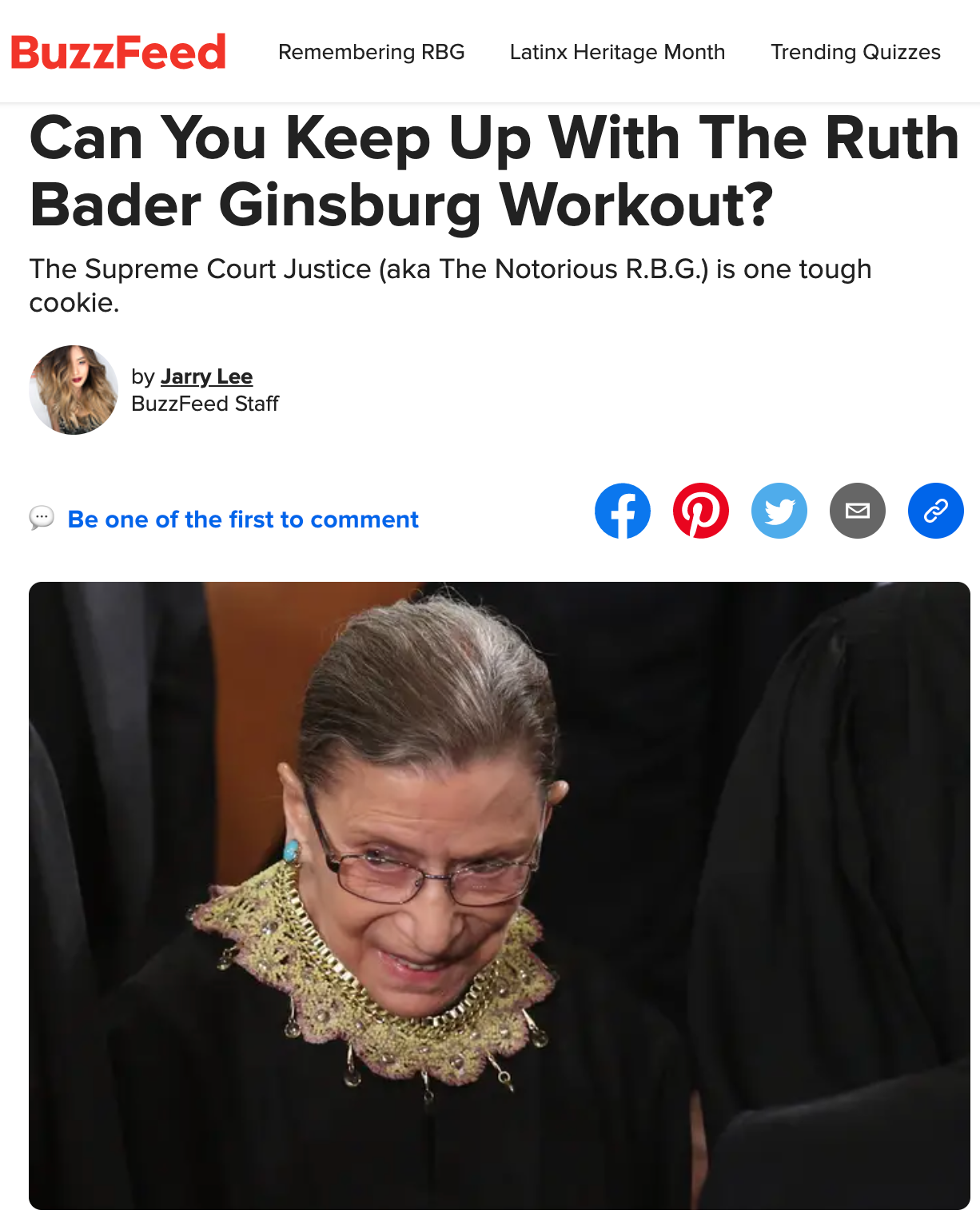 Featuring inspiring quotes and pictures of Ginsburg, the Notorious R.B.G. Tumblr page caught fire among young people, inspiring feminist merchandise, a parody music video and a 2015 biography.