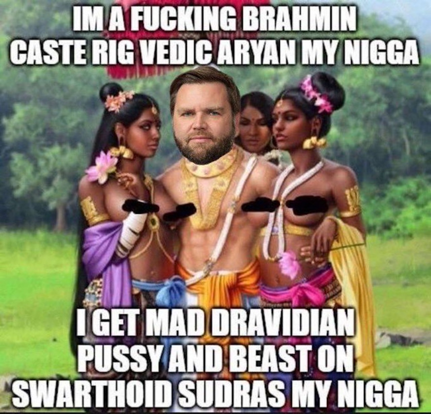 We’re going to war for Israel and we’re creating a new one-world religion to accommodate tens of millions of Indians being brought into the country to replace the white middle class. That’s the Trump 2024 platform and it is embodied in his VP pick, who is a radical pro-Israel extremist and involved in a bizarre mixed-race, mixed-religion family.