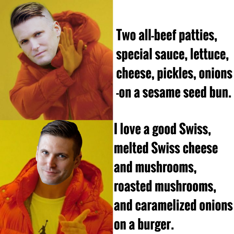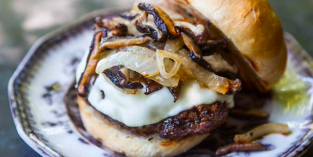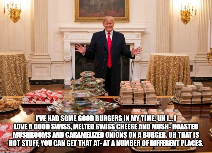I’ve had some good burgers in my time. Uh I… I love a good swiss, melted swiss cheese and mush- roasted mushrooms and caramelized onions on a burger. Uh that is hot stuff, you can get that at- at a number of different places.
