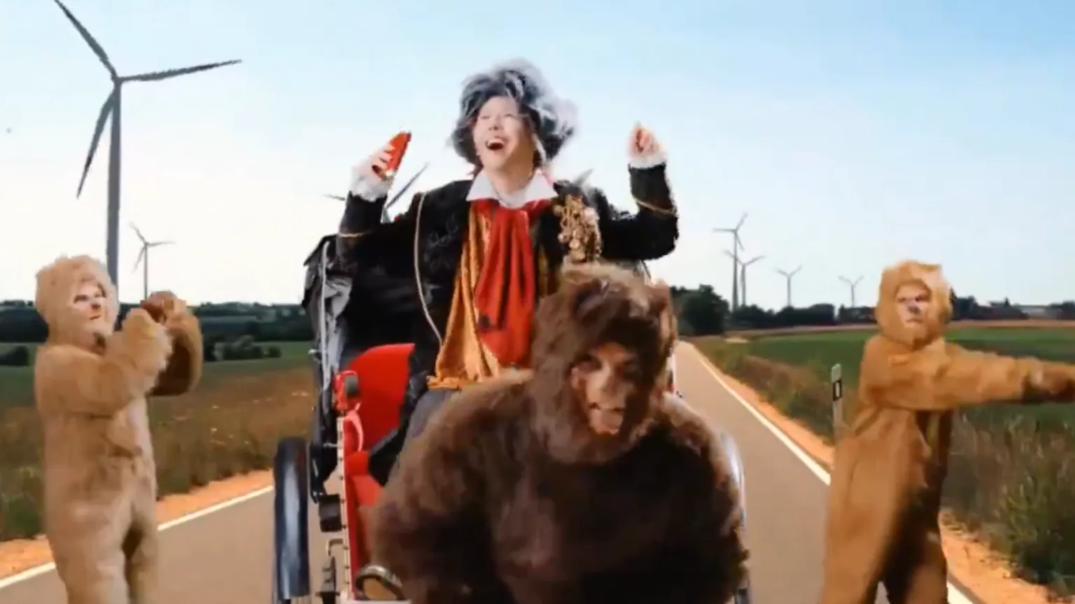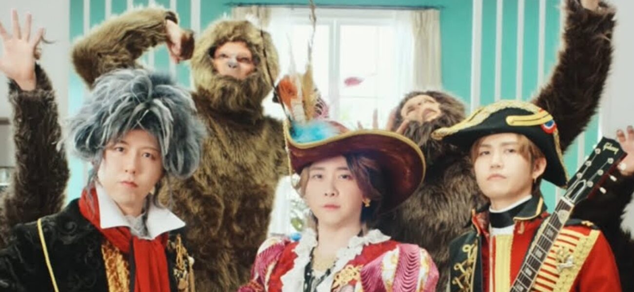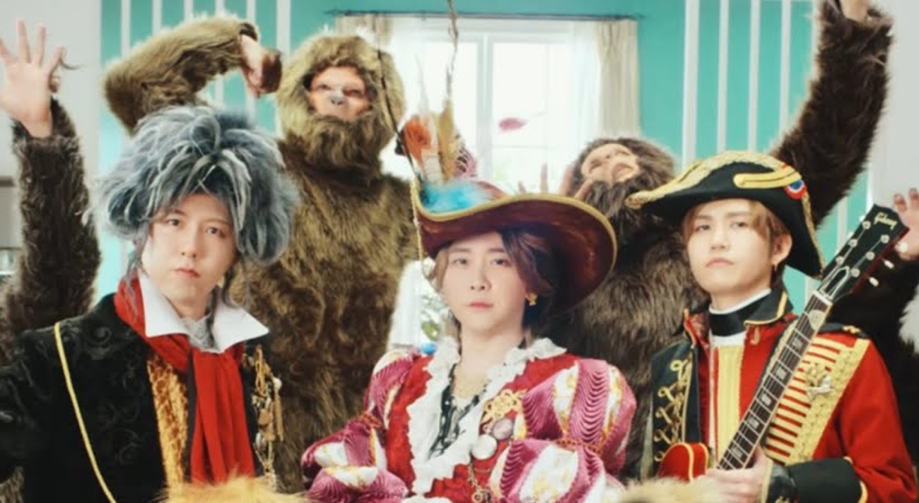 In the video, the band’s three members – dressed in costumes depicting Columbus, Napoleon and Beethoven – are shown discovering an island inhabited by people who look like apes.