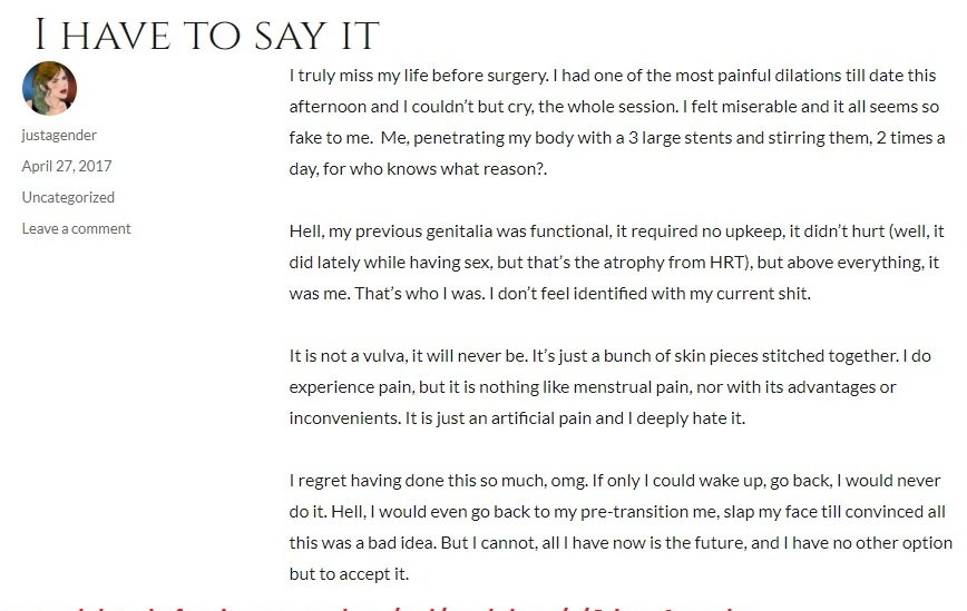 As expected, no one in the media is talking about how these surgeries very often backfire horribly and how transgenders deeply regret going through with them.