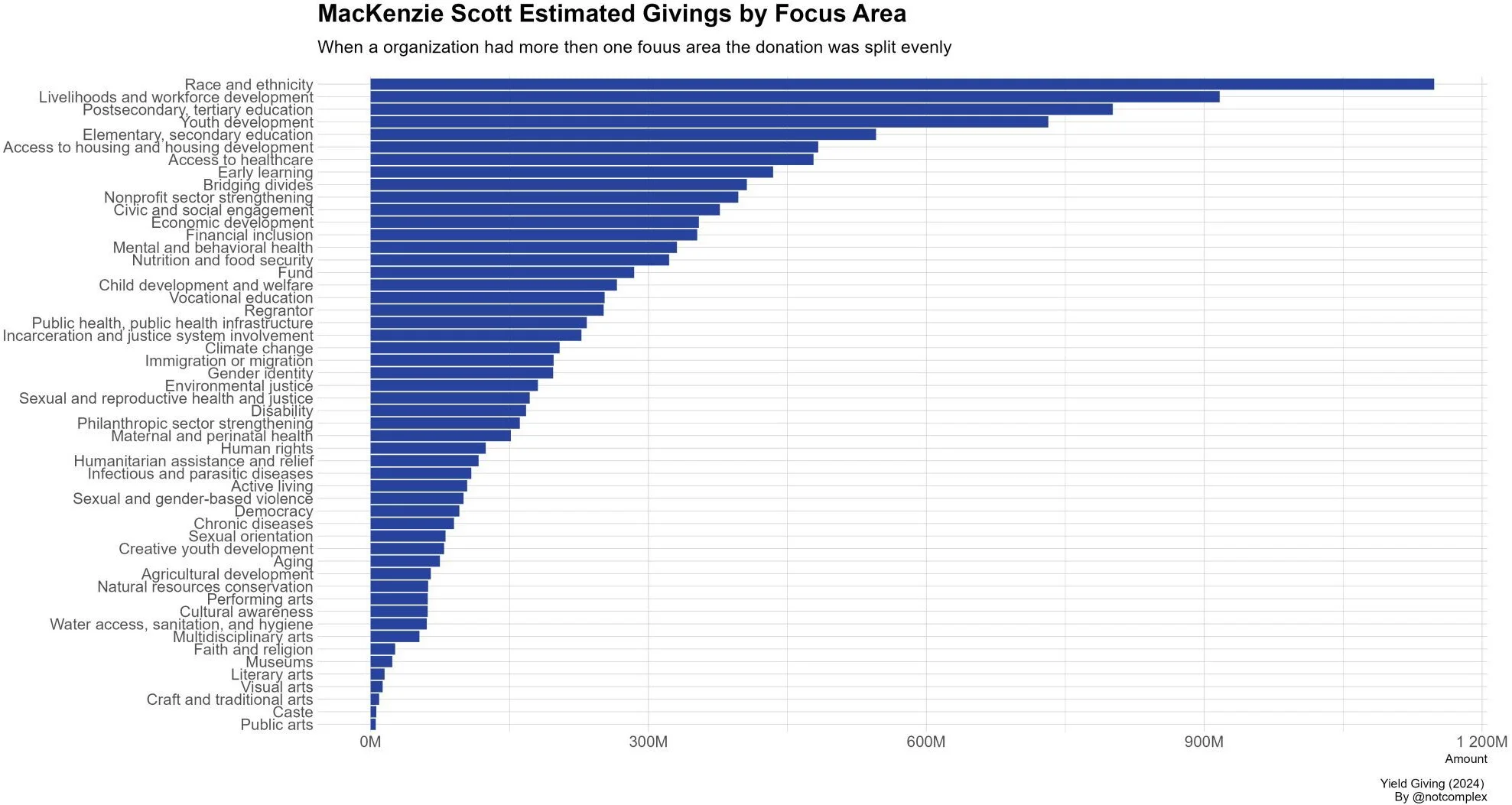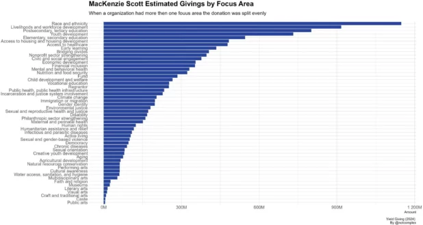 Prior to Tuesday’s announcement, she handed out $16.5 billion of her fortune to groups she and her team researched and selected.