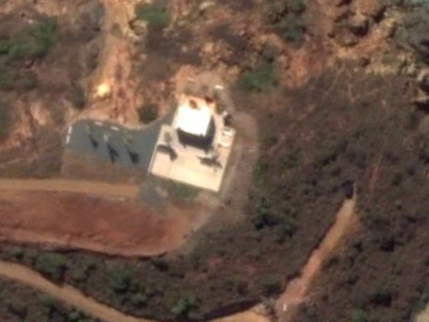 By February 2013, however, both structures (and newly widened paths leading to them) were clearly visible from above: