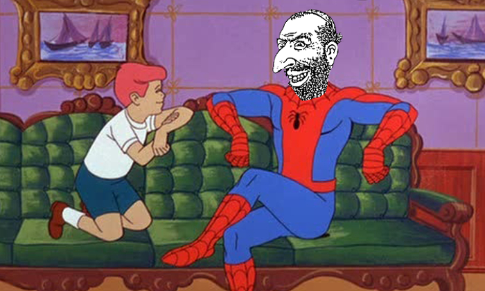 The especially sick part here is that Spider-Man is one of the only true Aryan super heroes there is, having been created not by the thieving talentless Jew Stan Lee, but by the great Slovak Steve Ditko.