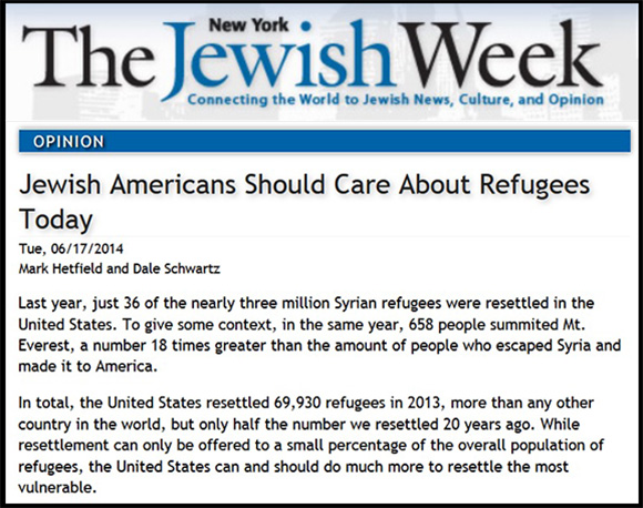 This, according to these Israel-loving Jewish Supremacists, was far too few, even though, they went on to say, in total, the United States resettled 69,930 refugees in 2013, more than any other country in the world”—but, they lament, “only half the number we resettled 20 years ago.”