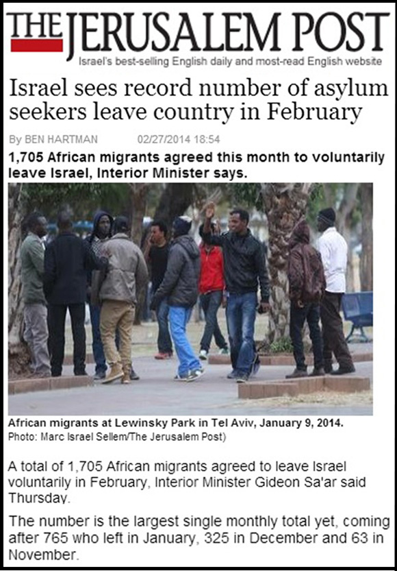 In the Jews-only state, according to a recent (March 5, 2014) article in the Israeli Haaretz newspaper, “Instead of protecting refugees as required by law, Israel boasts of its success in taking away their liberty and cajoling them to leave.”