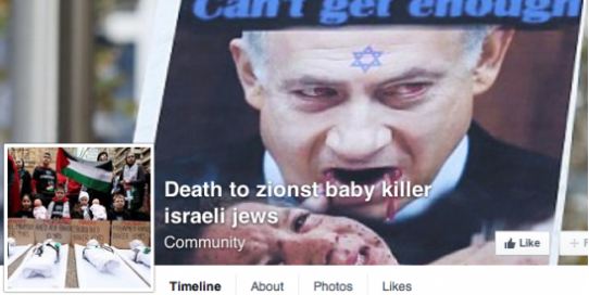 A Facebook page calling for the death of Zionist baby killing Israeli Jews which was only started a few days ago has been removed. The page featured an image of Israeli Prime Minister Benjamin Netanyahu eating a child.