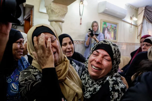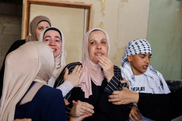 Video shared on social media showed cars and houses ablaze and Palestinian emergency services reported that a 22-year-old man was killed by gunfire from the settlers.