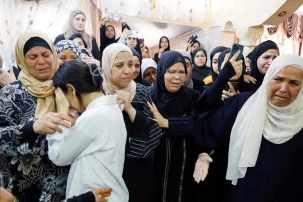 Mourners react during the funeral of Rashid Al-Sadeh, the man killed during the attack.