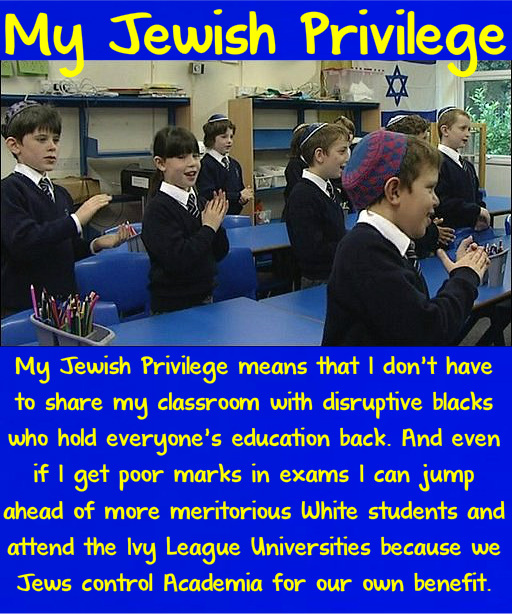 Unsurprisingly, the jewish enemy within has other ideas. In between fantasizing about the goyim slaves promised by the Talmud or massacring the shkotzim with another Holodomor this parasitic outsider is preaching White genocide in a publik schmuel. Sacrifice for the inferior, die for the demonic jew. This is the curriculum provided with your tax dollars. Cayden can barely read and Barkevious can barely speak, but at least they’ve been instructed by a nation-wrecker to feel guilt for their own existence and sullen hostility that often explodes into savage violence, respectively.