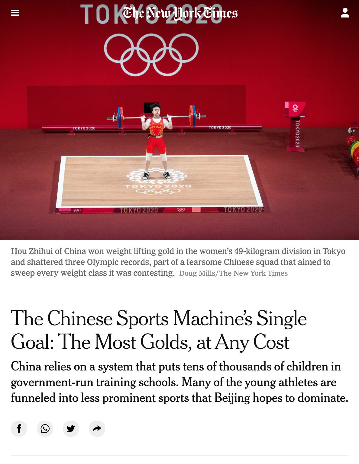 On Thursday, the NYT published an astonishing article titled ‘The Chinese Sports Machine’s Single Goal: The Most Golds At Any Cost’. The piece effectively claimed China had rigged the Olympics for political purposes, accusing it of “putting tens of thousands of children in government-run training schools” and funnelling young athletes into “less prominent sports that Beijing hopes to dominate.” The prize? To earn as many gold medals as possible, in the process scoring political points and bringing glory to their country.