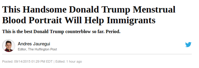 A Portland, Oregon, artist has decided to make a statement by selling a portrait of Trump painted in her own menstrual blood, and donating the proceeds to an immigrants’ rights organization.