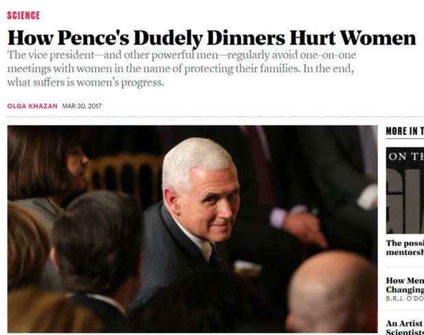 Ironically, the Jewish media previously mocked Vice President Mike Pence over his personal policy to not be alone with other womyn besides his own wife. They claimed that this was weird even though it is a common sense thing to do in today’s environment. This policy greatly lessens the chance that a crazy whore will be able to make up a false accusation against him. Comically, they went so far as to say that his policy hurt womyn.