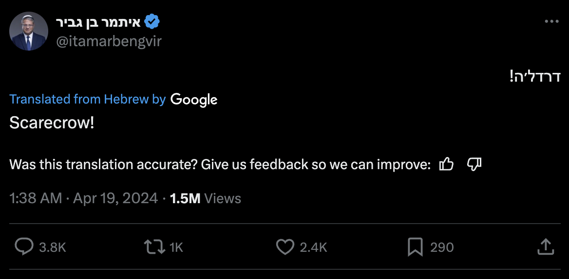 Ben-Gvir is both unhinged and functional, so I imagine he must be generally hilarious. Those things really always go together, in my opinion. Well, someone can potentially be funny without being unhinged (though it’s probably difficult). But someone can’t be both unhinged and functional without being hilarious.
