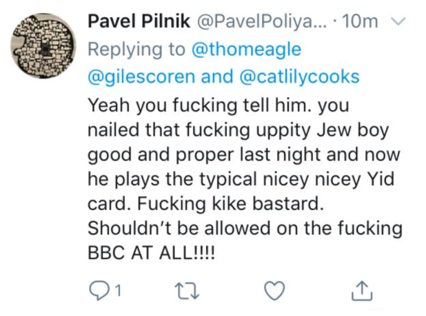 Inter-galactically famous Jewish journalist Giles Coren has been caught posting anti-Semitic tweets under a fake account. His goal was to discredit his opponents in various online quarrels he was engaged in by implying they were motivated by antisemitism rather than a principled objection to his own outrageous behaviour.