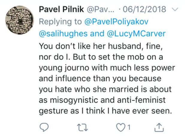 He also failed to maintain any kind of political consistency in the account’s tweets. On one occasion, it would pretend to be a rabid right-wing extremist; on another, a pro-feminist leftie.