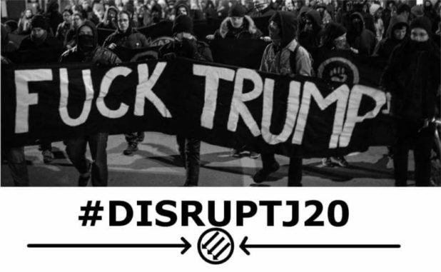 The promotional fliers for “Disrupt J20,” featured on Antifa webpages, had the downwards arrows Antifa groups use.