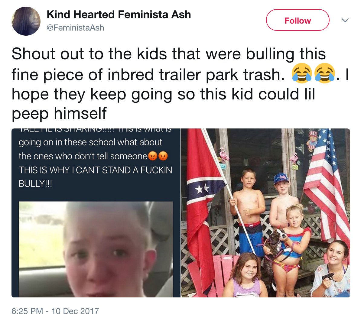 Somehow, the fact that his mother owns a Confederate flag is not only relevant to his situation, but a reason to attack him. Some aggrieved Twitter nigger fanatics frantically searched his mother’s social media for an excuse to ruin this humble family.
