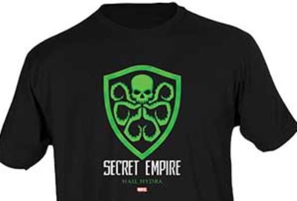 The promotion, which coincided with the 19 April 2017 release of Secret Empire #0, offered sellers the chance to order shirts for its staff bearing the insignia for Hydra, a villainous organization that has at times been led by Nazi supervillains Baron Wolfgang Von Strucker and the Red Skull: