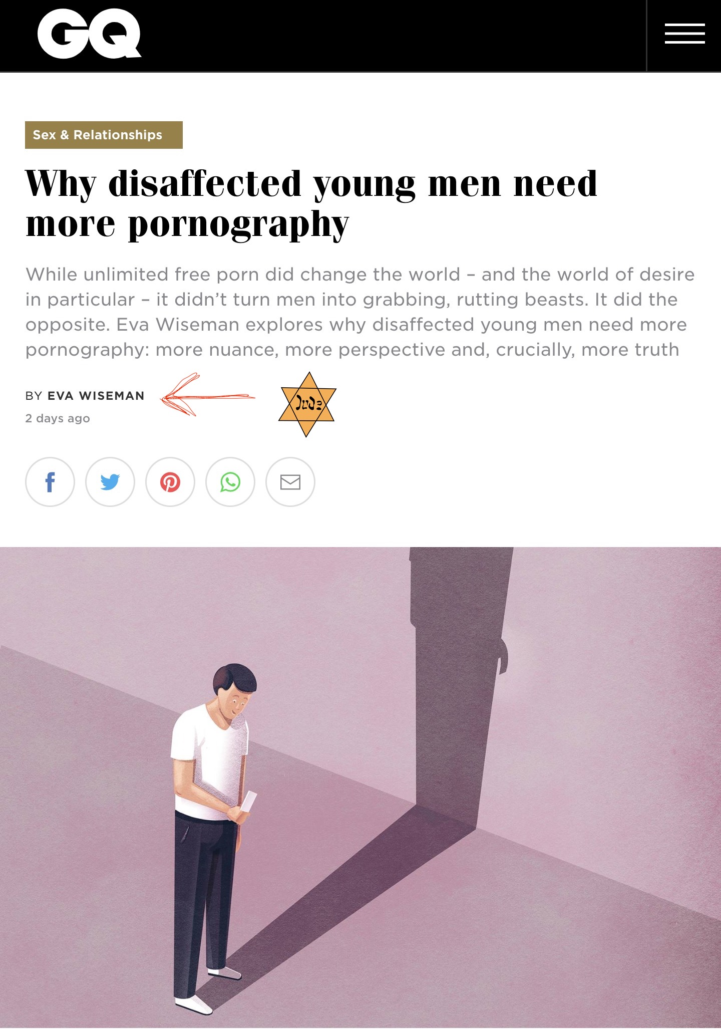 At GQ this week, we have a Jew, Eva Wiseman, promoting the use of porn by young White men.