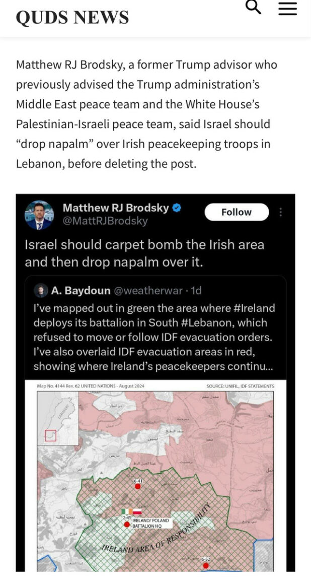 Social media platforms have witnessed a widespread incitement campaign by Israeli settlers targeting Ireland, following the country’s position refusing to withdraw peacekeepers from southern Lebanon.