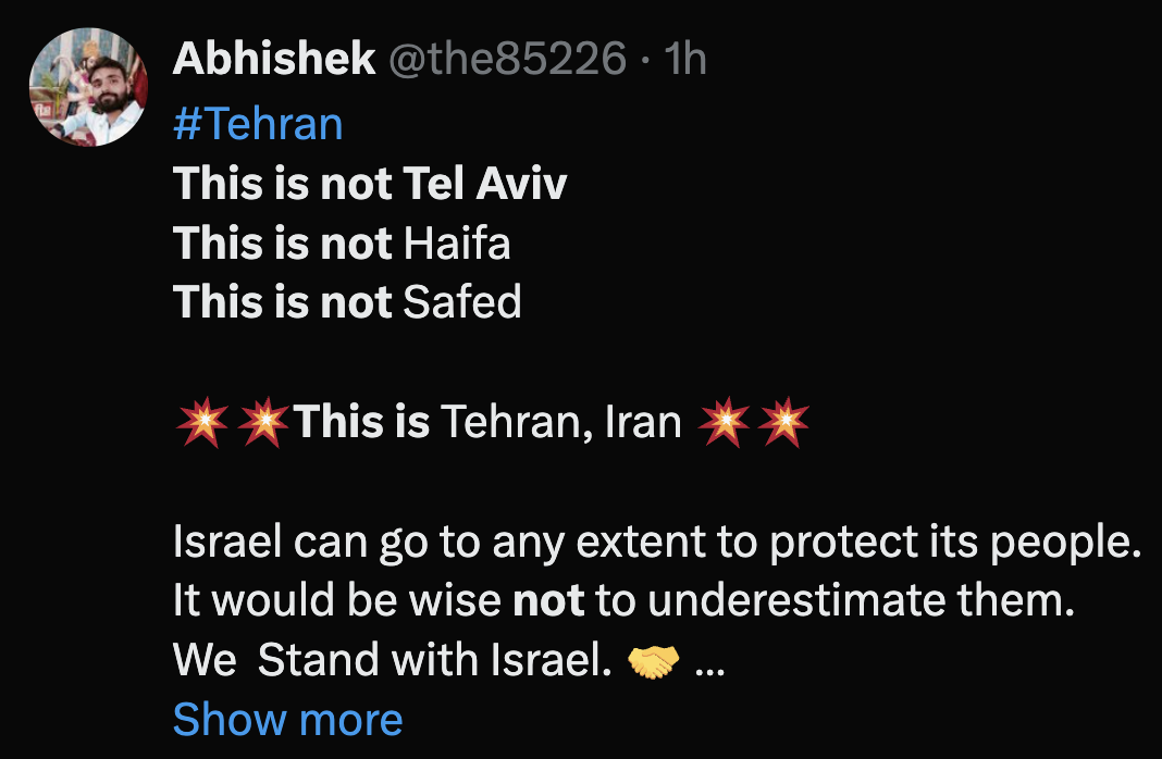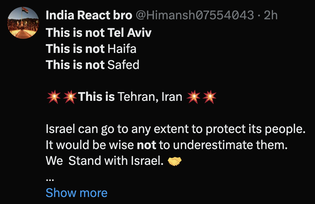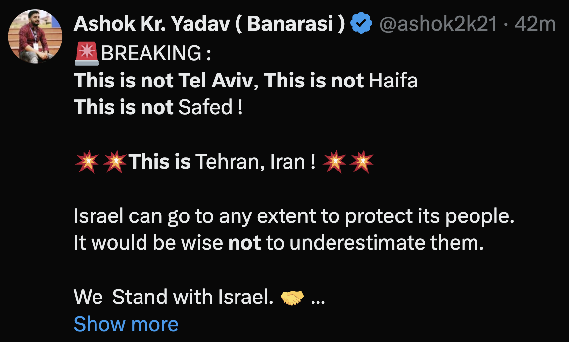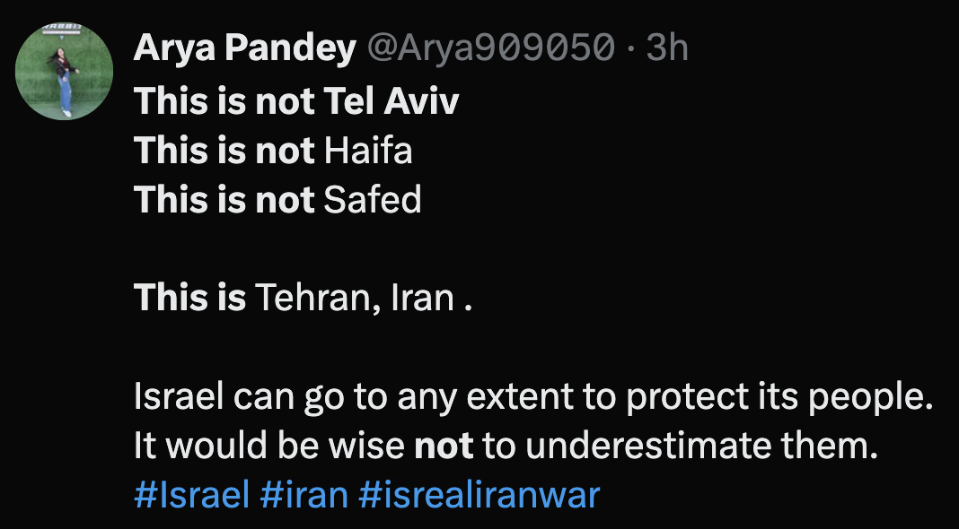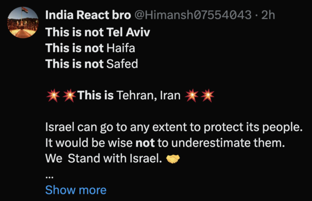 You can’t even find meaningful information on any world news topic on Twitter anymore, particularly in relation to Israel. Right now, if you click “Iran” on Twitter, you can scroll for the rest of your life and see nothing but Indians.