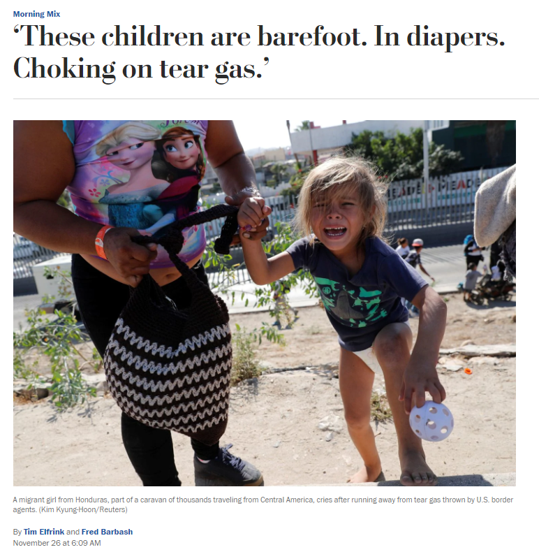 “Children screamed and coughed in the mayhem of the tear gas. Fumes were carried by the wind toward people who were hundreds of feet away, not attempting to enter the U.S.” https://t.co/hNZAGL7xbD— Amy Siskind 🏳️🌈 (@Amy_Siskind) November 26, 2018