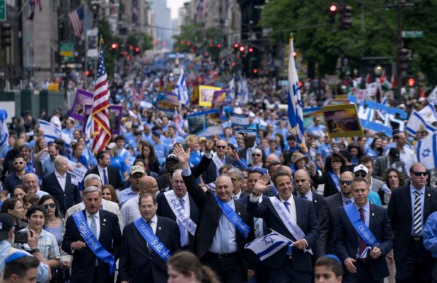 Elected officials joined thousands of marchers in a sea of blue and white flags along New York City’s Fifth Avenue for the annual Celebrate Israel parade.